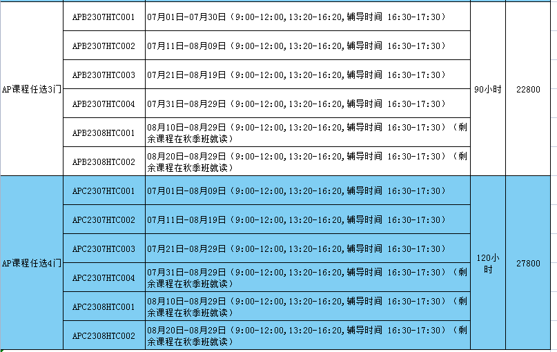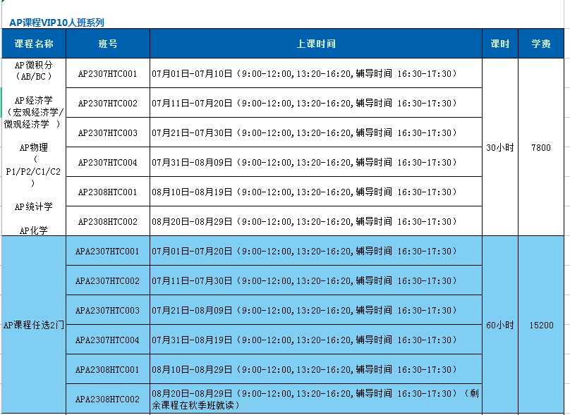 杭州新航道AP培训暑假班课表详情